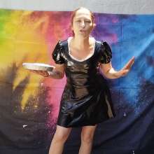 Your Red PVC dress brings back memories. My girlfriend had one just like it back in the day. She had known about my Pie fetish for about 3 months. One day she was at work and I decided to put the dress on and Pie myself. Right after I did that, her mom unexpectedly came over and let her self in our apartment and caught me. Let's just say that things snowballed after that because her mother thought my Pie Fetish was cute and wanted to be a part of it. I think she enjoyed hitting me in the face with Cream Pies more than her daughter.