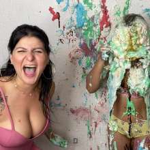 Impossibly sexy pieing from a (rather gleeful looking) master of the art, Bagheera! Also superb figure and form from the delicious pie target, including of course incredible helpless hands positioning.
