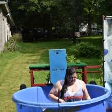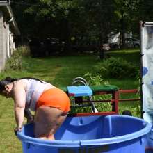 Video: Black and White Bathing Suit with Stockings Getting Wet!