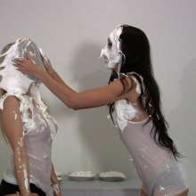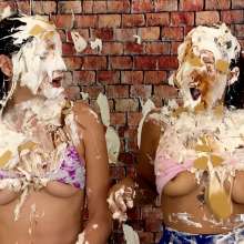 This old Elvis tune kept running through Liz's pretty head as Lane plastered her face with pie after creamy pie. 'That Lane, she really knows how to give a girl what she wants,' Liz thought to herself, giggling inwardly as waves of pleasure pulsed through her voluptuous body with each new pie hit.