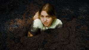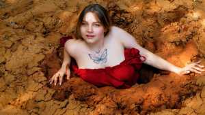 I love this scene. How Angel is struggling and almost, but just not entirely being able to escape the quicksand, that seems determined on consuming her. I wonder if taking of your clothes would help being able to escape your doom. In this case it didn't. But I'd love to see more models try it anyway. ;P