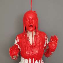 I love this photo. I expect that the splatter directly under the wife's nose is actually on the wall, but I would love to imagine that she was being hit by that splatter.