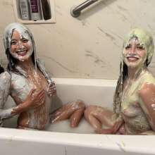 I love this video. Cute pouty face right before she gets hit with the pie. And bonus for the holding two pies in her hands, one of which is going into the other model's tits. Great work, as always!