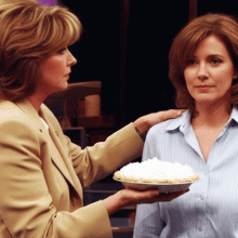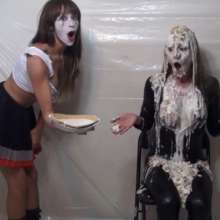 I wouldn't miss more cream on the one in the red sweater, but a surprise pie into the face of the girl on the right wouldn't go amiss, either.