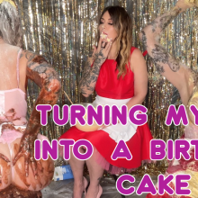 (speaking to herself) "C'mon, you can do it. You can plant your face in this cake."