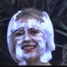 with 9 pies a-splatting, 8 powdered maa-alt, 7 fingers touching, 6 cups of pudding, 5 sacks of flour, 4 pots of choc., three quarts of goo, two cans of cream and some pinkish slop on my red nose
