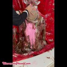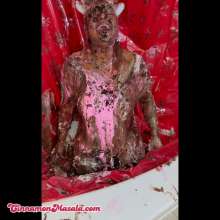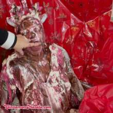 with 6 cups of pudding, 5 sacks of flour, 4 pots of choc., three quarts of goo, two cans of cream and some pinkish slop on my red nose