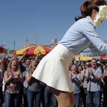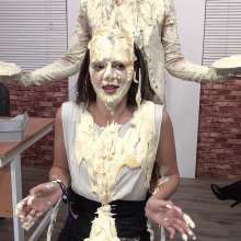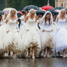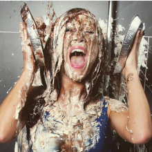 I like to see this photo about 1/2 second into the future to see if the splatter got the girl on the right. That face, that hair, and that dress would look lovely pied.