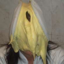 This image is nothing short of perfection... the hands raised in defeat, the perpetrator smiling at her masterpiece, it's a work of art! :)