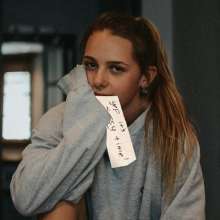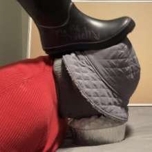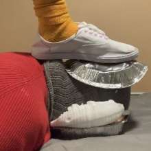 wow, some stretchy and surely smelly socks to hold her shoe like that.