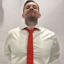 Photo: Buff Baker with a Chet's Bakery pie. Why plastic?