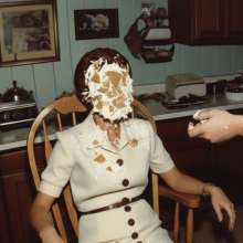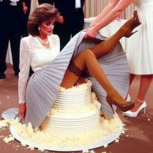 This is one of my very favorite among your many hundreds of great AI messy pics, Mr. Skirtpie. Such a sexy stance from the "cake victim," and I love the way her bountiful breasts are hanging just to the side of the cake as her face is buried in it!
