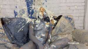 A serious -- and seriously colorful! -- glopping. As a "mess virgin," what can poor Ashley have thougtht at this moment about what she'd gotten herself into?