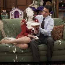 My god, how great would it be to let Daisy really have it with a pie to her gorgeous kisser? Larz seems to be having quite a good time doing just that!