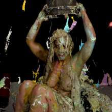 Such a great shot! We see the delicious pie-to-face impact, get a great glimpse at those spectacular boobs already oh so well creamed, and some great helpless hands are also thrown into the mix!