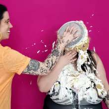Ellie, I love how thrilled you look to be pieing your friend! But I also love how she's covertly reaching for a pie of her own to take some sweet revenge moments later . . . :-P