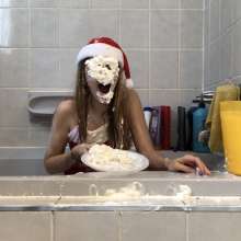 Peyton, your shocked and helpless pose here, with your face full of pie, your hands splayed out in helpless horror, and (projecting here) your loins on fire with wild desire, this is just about the sexiest thing I've ever seen!