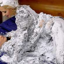 Love this expression (as well as those bare and messy boobies), such a wonderful sense of actual happiness with just the faintest hint of "Oh God, how have I ended up naked and completely drenched in custard... AGAIN!"