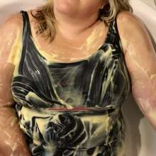 Chocolate goes well with the red hair and is making a nice journey into the cleavage :halo: