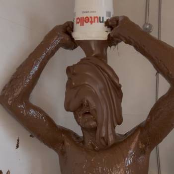 And down it comes! Engulfed in the sticky brown blob...
