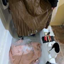 Commented on a photo: "A gorgeous pleated skirt, I hope it felt good soaked with everything else.