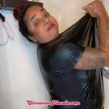 Uploaded 16 new pictures in a forum post, "Shower still in a black dress! (Masala)"