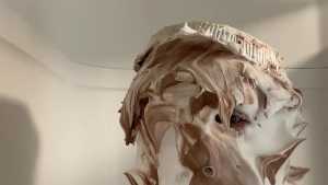 Ideal? Lately it's the direct splat right in the face, not thrown, with one hand holding back of neck. Banana cream