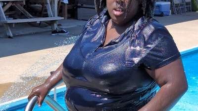 Coming out of the Pool in Tight Black Clothes