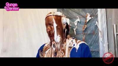 Hairless Gunge Wanker, shaved from head to toe and wearing just a shirt and jockstrap, covers himself in chocolate spread. He spreads a handful of it down inside his jock and smears it over his cock and balls. He spreads it around and jacks off. Alas, the last part of the video, with the cucumber dildo, no longer exists.