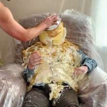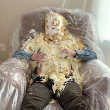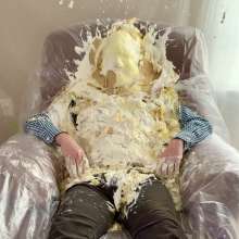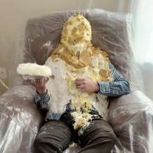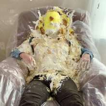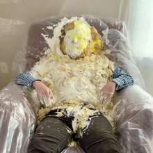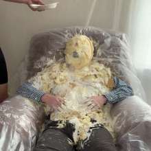 Last year on my bday, I got caked and pied in a party hat. Then I thought I was gonna kickback and relax in a recliner but got clobbered by pies