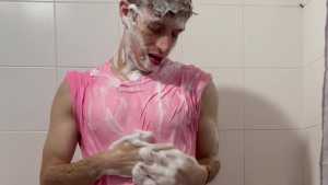 Commented on the scene Super Wet in the Shower in Pink T-shirt with Mega Shampoo, "So sexy"