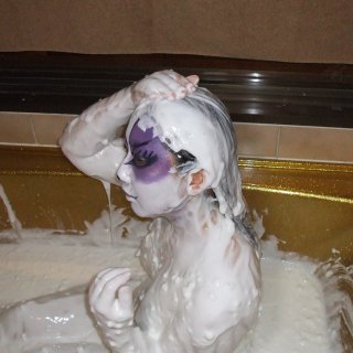 Love getting completely covered from head to toe in custard (my favourite substance) chocolate syrup, molasses, marshmallow fluff, maple syrup, pies and cakes-so yeah anything sweet. Also love wetlook, getting soaked in my sexiest lingerie in a pool, shower, bath. Never tried mud, slime or gunge but I'm open to diving in a deep pool of it with a special someone.