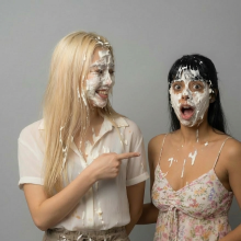 Commented on a forum photo: "somehow she changed from blonde to brunette and seems to be Asian as well lmao! The way to stop image edit from doing this is to upload the 'pied' picture AND the original 'clean' picture. If not the AI has no way of knowing what her face looks like when it is covered with a pie tin"