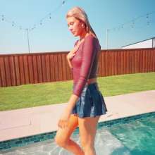 Katie Gets Wet in A Sexy Jeans Mini Skirt and a Bodysuit