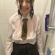 Commented on a photo: "Im here in my sisters uniform waiting to be pied"